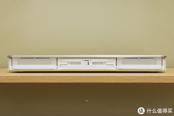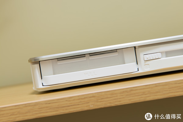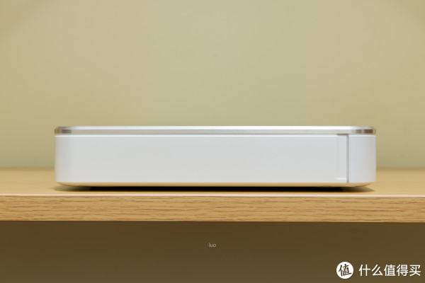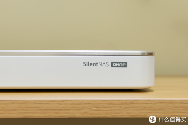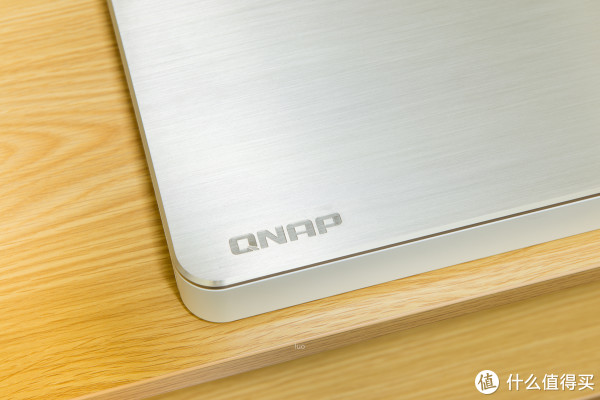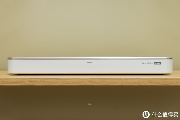 机器本体,一改常规NAS的外观设计,就像一台蓝光播放器。机器正面非常简洁,只有中间有一个指示灯,右侧是QNAP的logo,同时也标注了NAS的特性:Silent。