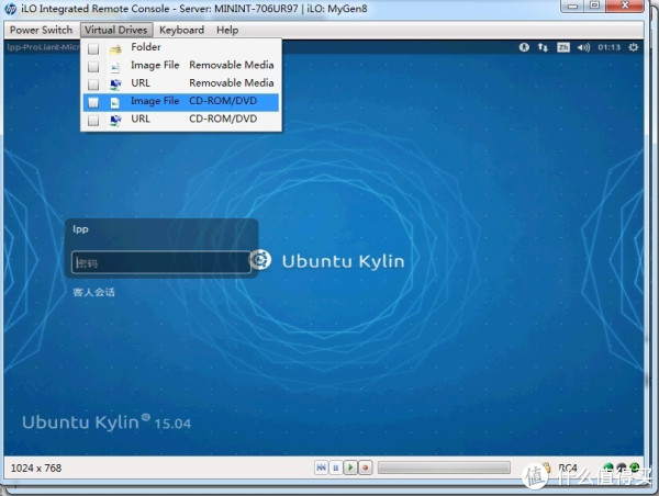 这个Remote Console还有一个好功能,可以加载光盘镜像——不用光驱也可以给服务器安装系统了。如下图所示