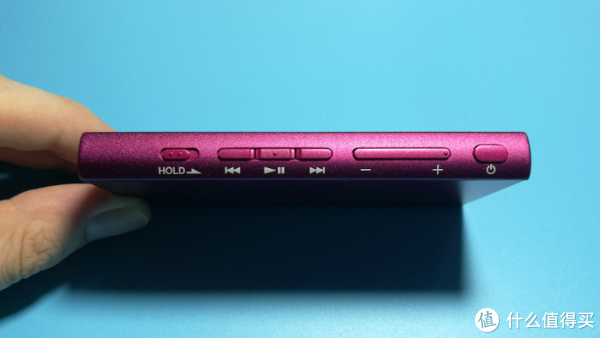 A35的所有功能按键均集中在机身的右侧。从左到右依次为锁定键、上一曲目、播放/暂停、下一曲目、音量减与加、电源键。其中播放/暂停与音量加键上均设有凸起圆点,十分便于盲操作使用