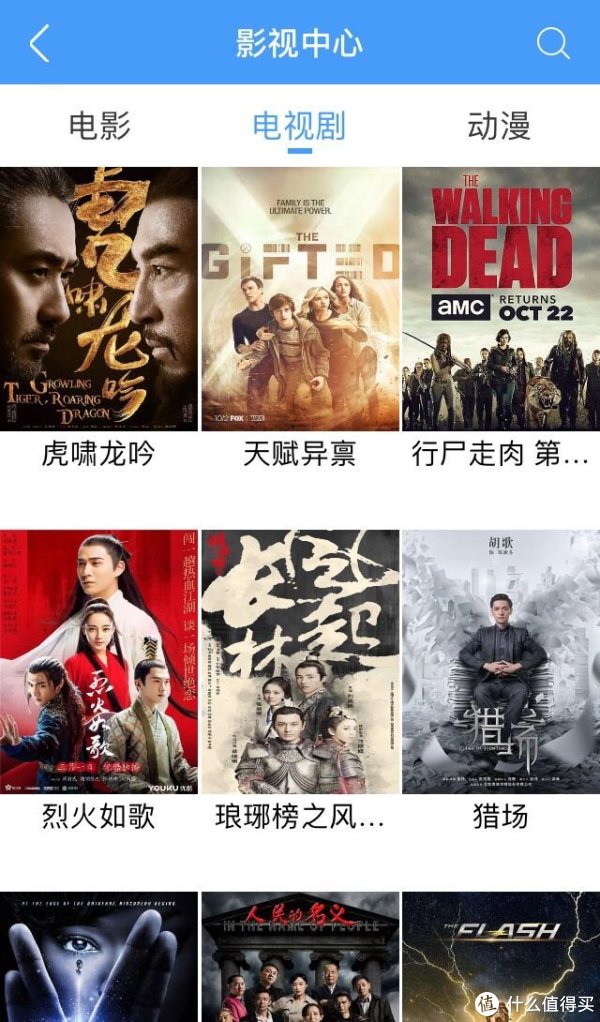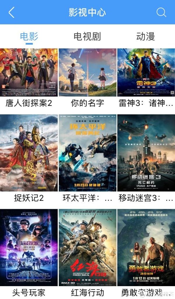 在上周更新了app,我的栏目增加了影视中心项目,打开后是下面的界面。