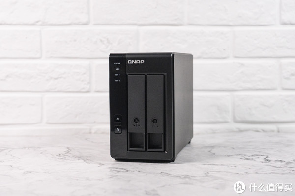 威联通 TR-002 两盘位磁盘阵列外接硬盘盒外观展示(托架|指示灯|按键|风扇|接口)