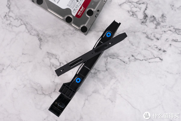 硬盘托架采用了免螺丝设计,只需拆开两边的侧边条,放入硬盘,对准螺丝孔,然后再把侧边条卡回去就安装完成了。