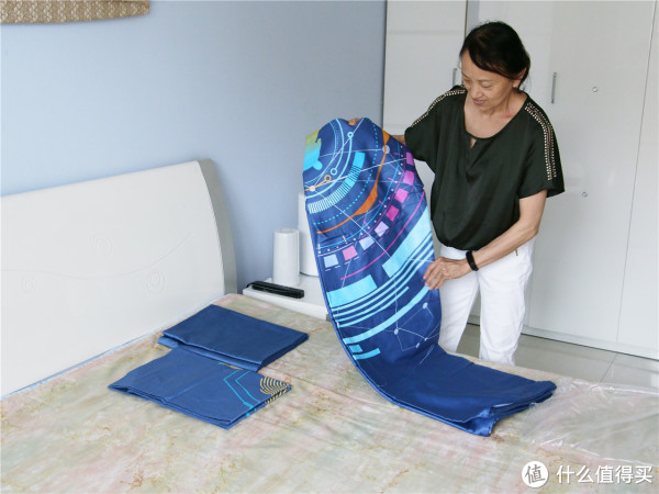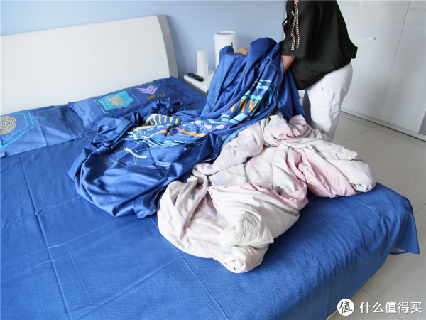 如果是两个人来把被子装入星辰大海米兔四件套被套中,就方便的多。一个人来装被套就需要把被子固定在被套一条边两个角,然后就需要多次抖动,把被套展开,并且不断调整被套内被子的方向,最后调整到合适的位置当中。