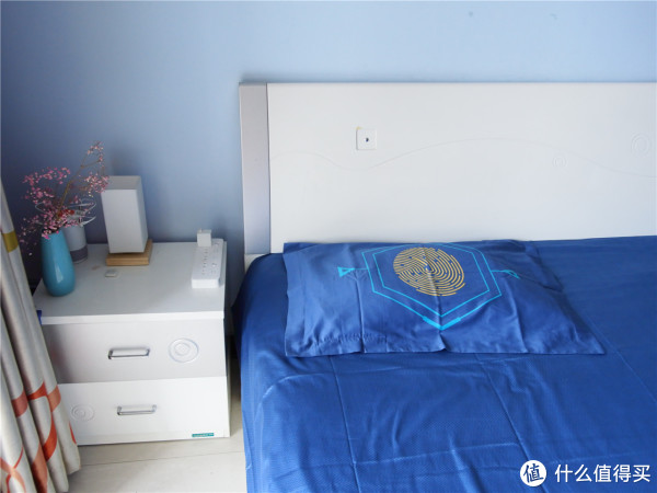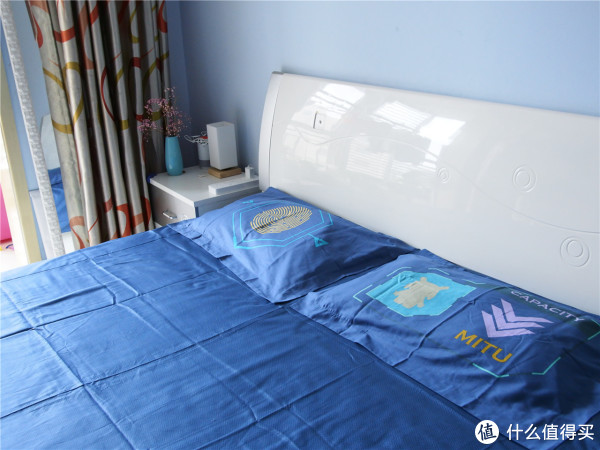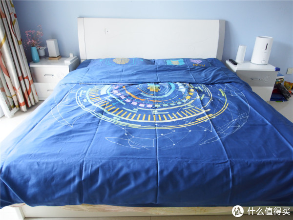 星辰大海米兔四件套的枕套四周还设计有5cn回边,这种像是信封一样的设计方案,比折花纹理方案整洁的多一些,而且装入蓬松内芯的话会更能体现出回边的整齐感,深色的枕套也是比较耐脏的,蓝色适合调配家中卧室颜色。