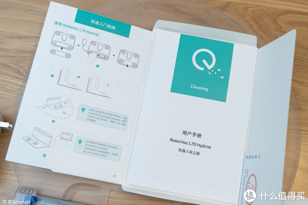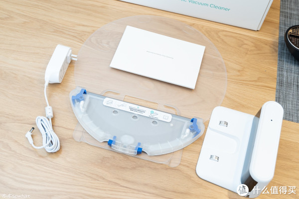 配件包括:说明书、防潮垫、充电底座、电源适配器、拖地组件,说明书设计也比较美观,按照指引基本上手还是很方便的。