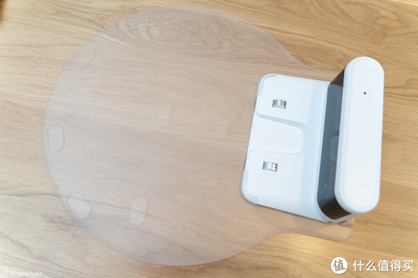 充电底座和防潮垫全体的样子,如果底座放置的地方为木地板,用了防潮垫可以防止木地板长期与水接触发霉等。