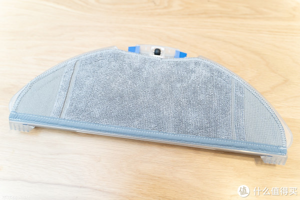 再来看拖地组件,一眼看上去就能看出来做工优良,中间为三个透水孔,可以让拖布上面的水更均匀,底端还有导向轮,运行时会更平稳。