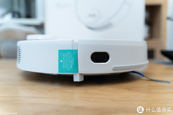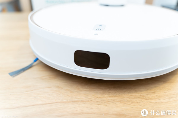 侧面为沿墙传感器,碰撞缓冲器和扫地机本体之间还放置有运输时的缓冲海绵,建议取出。