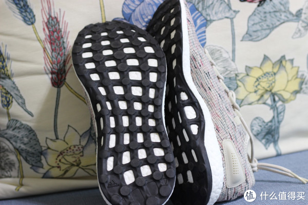 不知道为什么,四块钱没看到马牌的标识,底部的黑色橡胶,与白色boost相间,个人觉得,如果黑色底磨损完毕那么这双鞋就没法穿了,因为白色的材料太软,经不起磨。