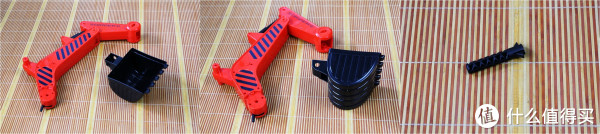 我个人会建议首先安装挖臂和挖斗,以及它们两者之间的插销链接。将挖斗和挖臂的连接处的孔对齐,然后插入挖斗插销。挖斗插销像螺丝一样有凹凸问纹理,最后还有两个凸起的卡扣,用于紧固挖斗和挖臂,挖斗的方向应该朝下。