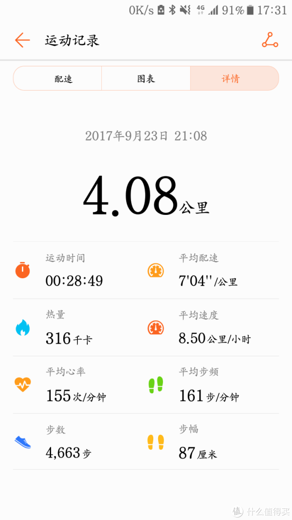 跑步:跑步模式可以从手环开启,也可以从APP开启,在该模式下手环会显示跑步的时间,跑步消耗的卡路里,跑的距离,每跑一公里手环都会震动提示。点击两次会结束跑步,APP上会有详细的信息,具体看图,有三个呢。是非常不错的。后来我才知道,我心心念念的轨迹功能只有IOS和华为系统才能使用,泪。