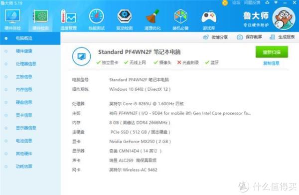 性能方面,神舟精盾U45A1笔记本采用的是第八代英特尔Core i5-8256U处理器,主频1.6GHz,最大睿频频率3.9GHz,算是超频版的8250U,性能提升幅度大约10%左右。加上Nvidia Geforce Mx250 2G独立显卡、512SSD固态硬盘和8G DDR4高频内存,整机性能得到了充分的发挥,鲁大师跑出了20W+的高分,这就回到了我开头说的,不仅仅可以满足基本的办公娱乐需求,市面上的主流游戏也都可以畅玩。