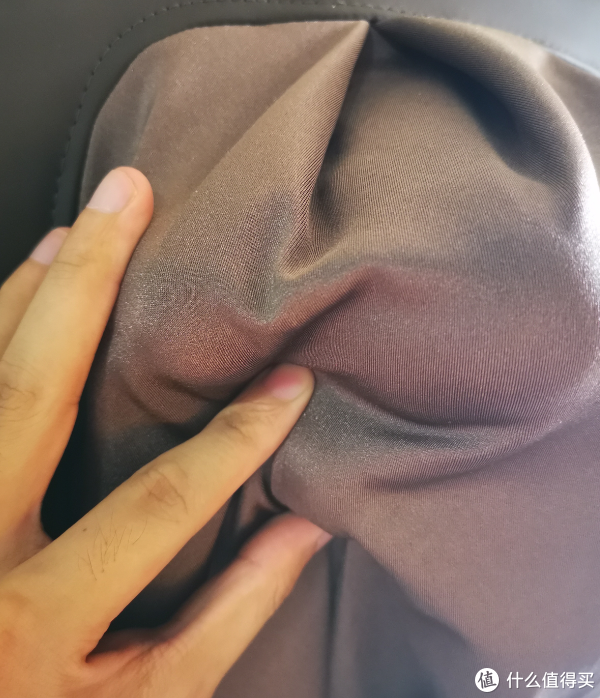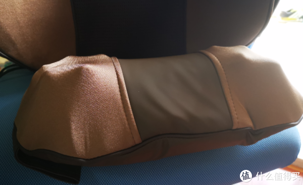 按摩头外使用的是蜂窝网布,具有良好的透气性能,弹性足。其他部位基本上都是PU皮。整体做工挺不错,背后有魔术贴固定靠垫。