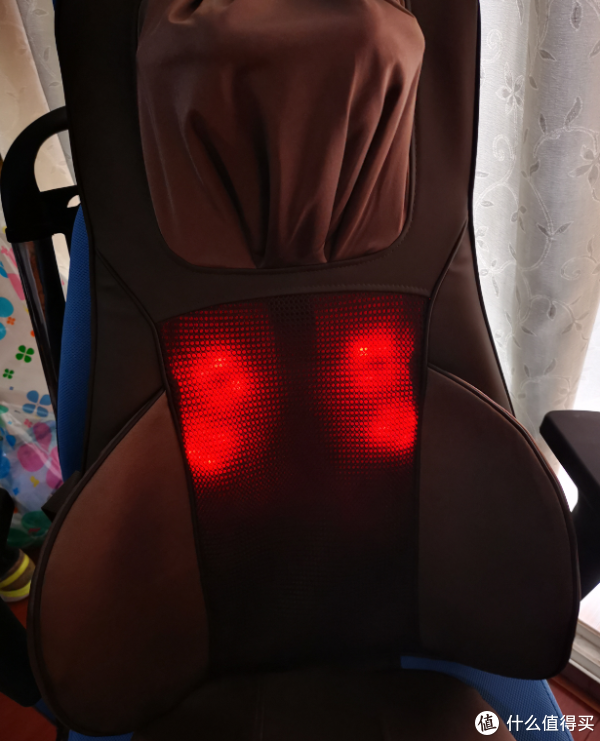 按摩垫由于有气囊,所以推荐坐立位放置,果断就把这个放在椅子上,效果图如下,很傻瓜