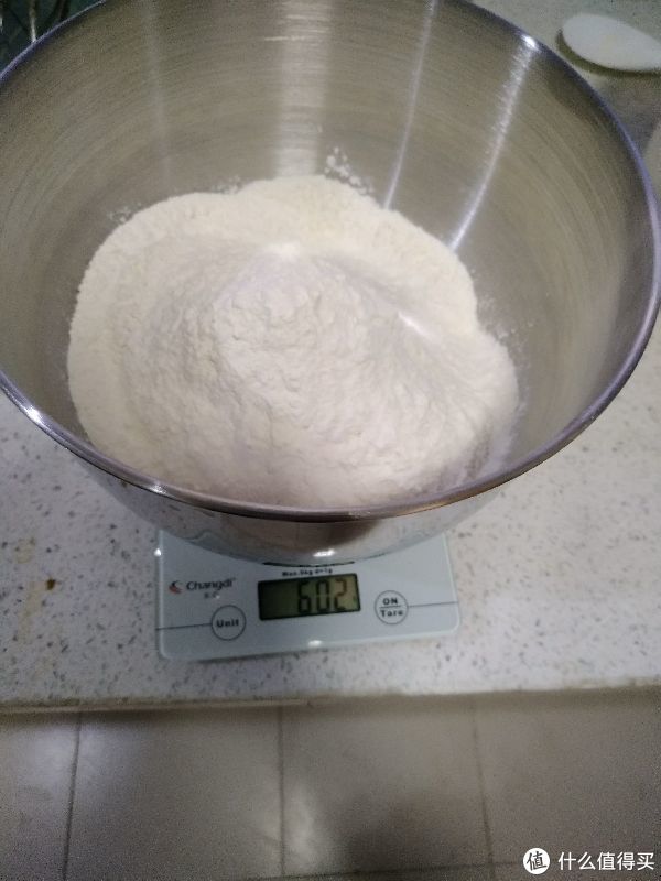 放入600g高筋面粉(高筋粉做的馒头比较劲道,用普通面粉也可以)