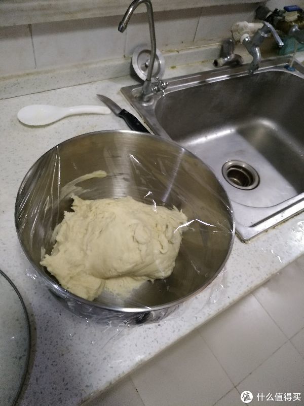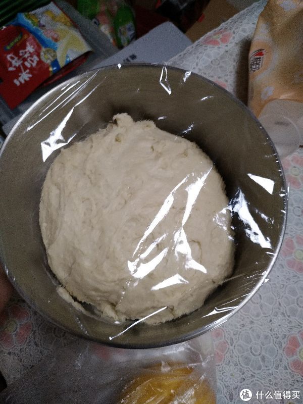 15分钟以后停机,用保鲜膜把不锈钢盆封好防止发酵时水分流失,让其发酵1.5小时(冬天气温低时可适当延长时间)