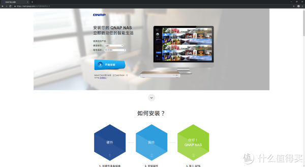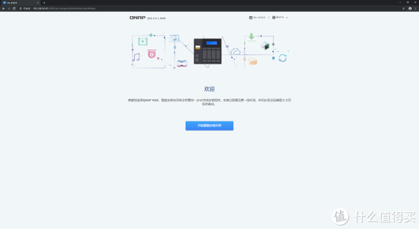 根据说明书,可以直接使用浏览器并访问https://start.qnap.com来对NAS进行配置。