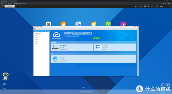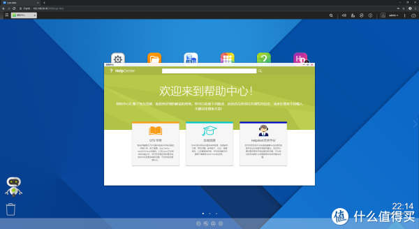 登录后是类似桌面的一个界面,首先弹出的是帮助中心,这对初次接触NAS的人还是有一定帮助的,由于我已经对QNAP的NAS有一定的了解,就直接略过了。