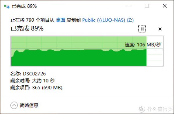 模拟常规文件的拷贝,这里选用了一些照片进行测试,传输速度维持在千兆网络水平。