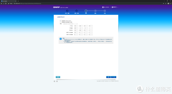 由于是首次安装,需要对系统进行初始化配置,看到这里,一切都是比较简单的,并且每一步都有对应的文字说明,相信小白用户使用起来也不在话下。接着就直接跳入到浏览器里面智能安装向导了。