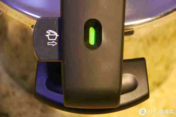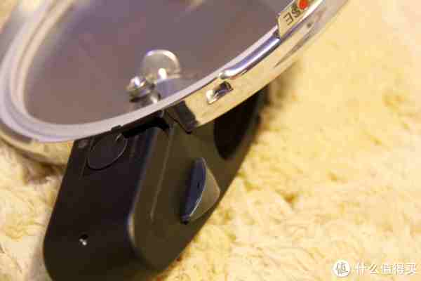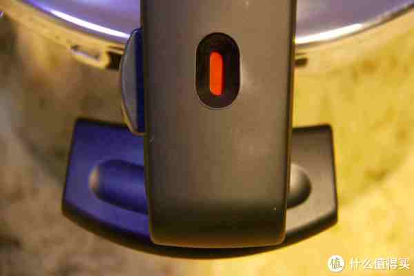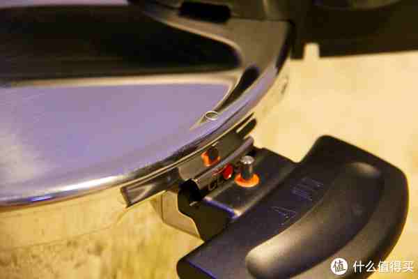 Fissler的闭合、解锁系统,旁边的按钮按进去之后,绿色的按钮就会变成红色
