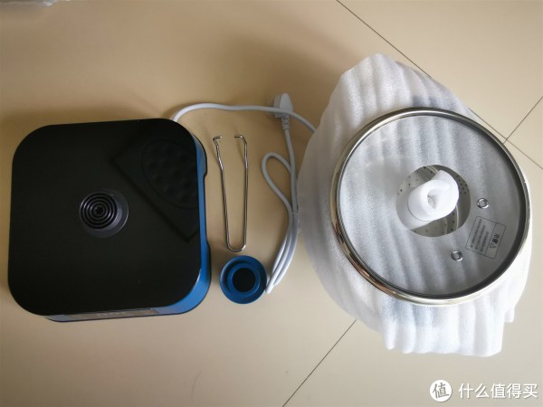 拆解完所有的包装,产品清单包括:底座、锅盖、锅体、提篮夹子。每一个配件都包装到位,有效保障了产品的完整。