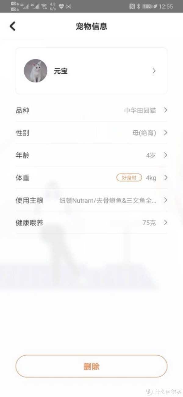 那这个东西最大的问题我想还是集中在APP上了,虽然该有的功能基本都有了,但你说作为一个喂食器吧,科学出粮才是王道吧,出多处出少要让猫奴们有个数。在你第一次使用的时候是需要绑定你的宠物的,就是设定好品种,体重,以及猫粮类型。APP会根据这些数据向自动帮你设定出粮的数量,但官方的建议方案实在是太豪放了,一搞就是一大把,我家的猫根本就吃不了这么多啊!每天剩饭不少,前面我也说过我们这里湿度极大,过不了多久猫粮就受潮了,影响口感。哎,猫碗不是能称重吗?你可以根据那个来啊,问题又来了,这个猫碗只能实时称重,根本没法查看历史数据,你说要是做成米家温湿度计那样能自动搜集数据并形成一个图表那该多好,猫咪啥时候吃,吃了多少不久一目了然了吗?现在想知道主子到底能吃多少,只能每段时间目测一下,看着给,或者每隔一段时间看看app,然后用纸和笔记录下来进行推算,是不是麻烦到爆?