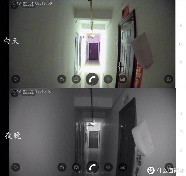 如上为白天和夜晚的场景对比,可以看到无论是白天还是夜晚,走廊的环境画面都非常清晰。虽然白天部分地方有些过曝,但对正常环境的判断没有影响。这里有个特别感受是,X1采用的4颗无感红外夜视效果很好,单思在门外看感受不到有红色夜视灯,给人的感觉会更加友好。
