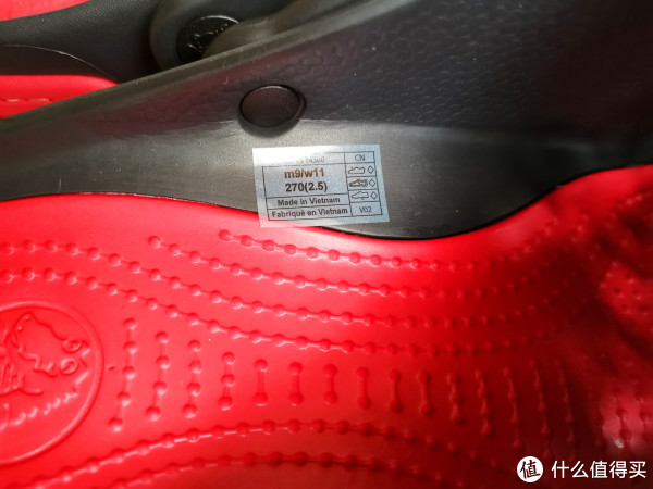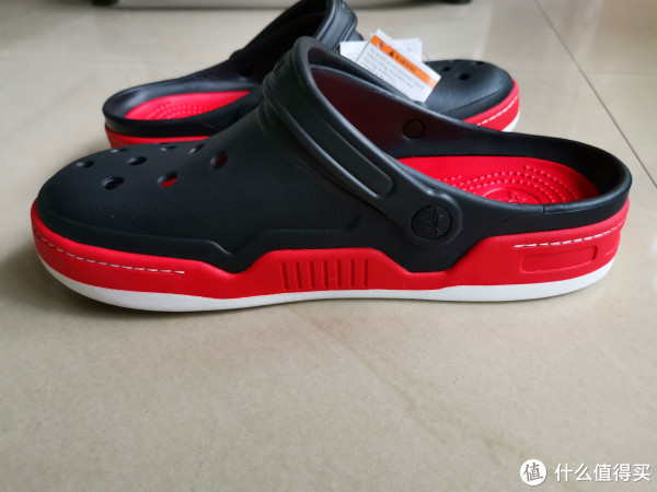 我的鞋买小了一码,不挂上鞋带还好,挂上鞋带前面就会顶脚,打算买鞋的值友看好了,应该比平时穿的鞋买大一码才好,因为Crocs标注的鞋码都是两个相邻鞋码中的最大码。43码其实是42-43码。并且鞋子还是比较重的,边缘还是有点硌脚,需要适应一段时间。