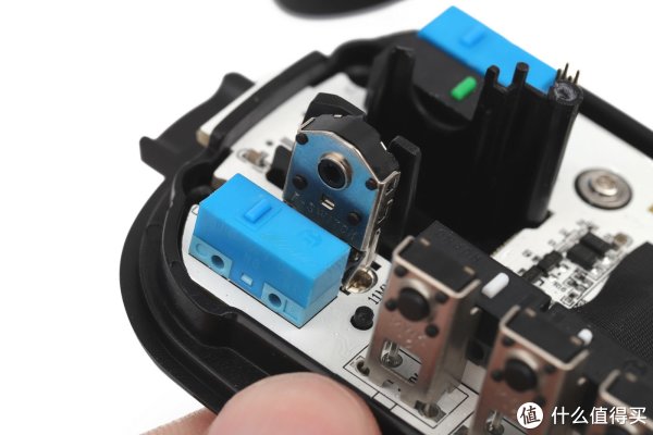 滚轮LED所在的微型电路板是通过4PIN插针的方式与主板连接,不再是排线,看起来更为先进。