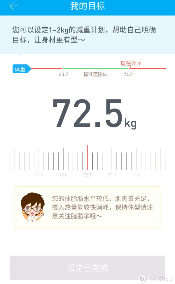 扯远了。有品体脂称,上手连接很迅速。第一次上称,结果出来很快,速度把我惊呆了。从上称到手机显示结果,最多不超过2秒。至于报告,我也就对体重这项比较相信,其它的准确性还有待检验吧。以下为APP截图及简要点评: