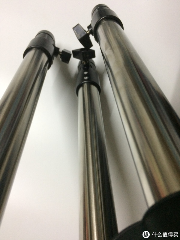 不锈钢的三脚架,分量也是十足,这个也是DX跟EQ的最大区别,EQ是铝合金的,比较轻,而天文望远镜因为观察时需要不停的转动镜筒,再加上放大倍率大,所以要求下盘够稳才能不晃,三脚架是越重越好,这个跟摄影三脚架正好相反