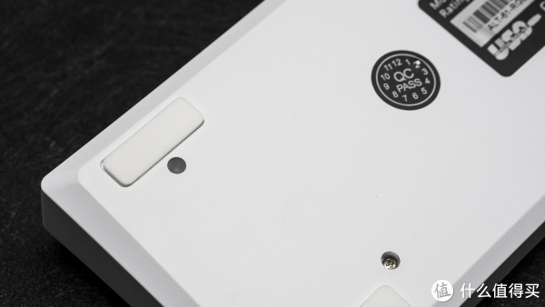 ▼键帽采用了PBT双色工艺,闭口字符在美观程度上有一定的优势。填充材料是PC,达到字透的效果。