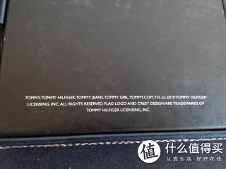 不得不说,钱包的包装还是挺不错的,适合送人。这个盒子的材质比较硬,摸起来也是皮料啊。正面就有TOMMY HILFIGER 的阴文了。四面缝合的针脚很细密啊,良心做工 。背面的英文看不懂是啥子玩意儿。