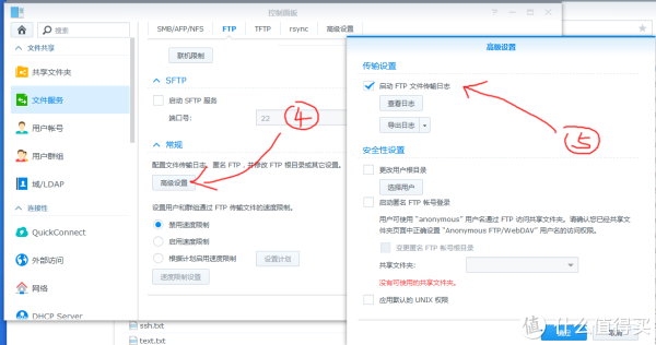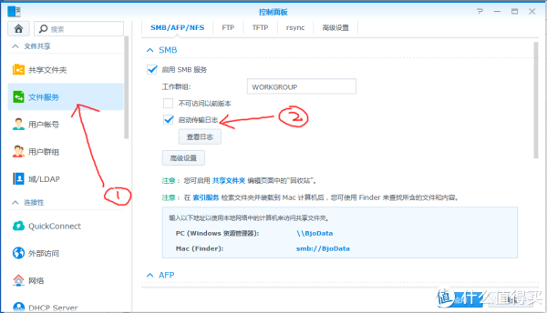 打开控制面板----文件服务----SMB/AFP/NFS----勾选启动日志。