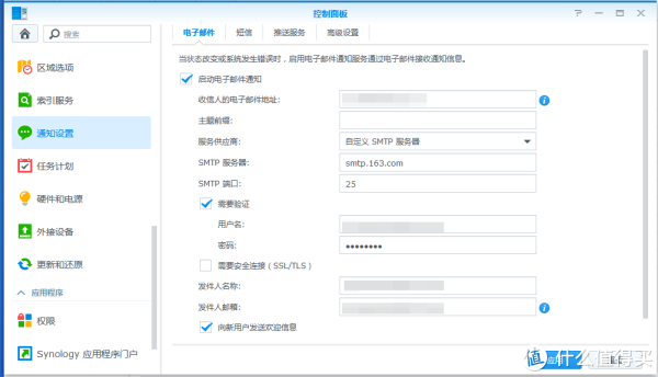 在通知设置中启动电子邮件通知,这样系统更新、磁盘、网络错误、乃至鉴权失败都会通知。