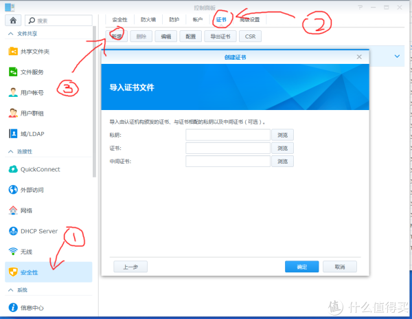 申请完ssl证书它会给你的注册的邮箱发送若干zip压缩包,这个就是给不同web服务器软件使用的证书,对于群晖,咱们要使用apache的证书,解压后一般来说有3个文件:扩展名是key的那个是私匙、文件名叫 ca-bundle.crt是中间证书 另外一个还是扩展名是crt但文件名是你注册的网址的那个就是你网站的证书,把这3个文件导入到群晖中,证书即安装成功。