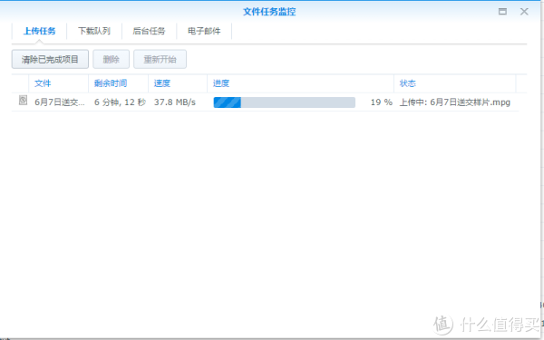 首先,web端支持超大文件上传和直接拖拽上传文件/文件夹,这两点优势明显,我直接通过web端的file station 上传54g的超大文件,没有任何报错。不过通过web端上传相对于千兆网的传输速度还是有点慢,不知是软件优化的问题还是开启https加密后开销导致的,当然对于只有百兆外网带宽,这个速度已经完全满足了。