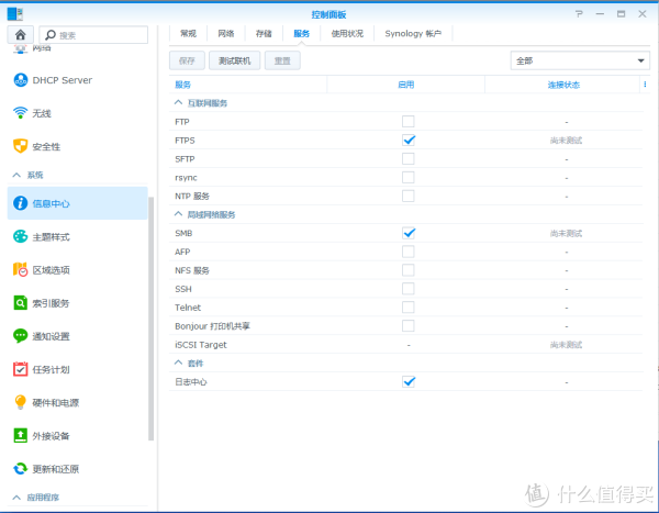 最后看一下有没有开启多余的服务,至此群晖软件配置完毕。