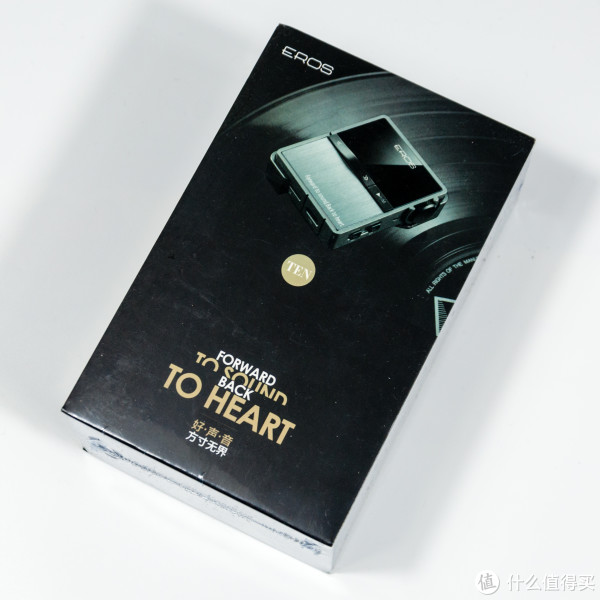 我所收到的Eros Ten HiFi播放器采用了黑色的包装设计,表面贴有塑封,不过反着背景的摄影灯拍出来就不是很好看了。