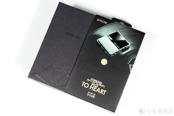 Eros Ten HiFi播放器的开箱需要从侧面取出,一个黑色的硬纸盒保护着内层。