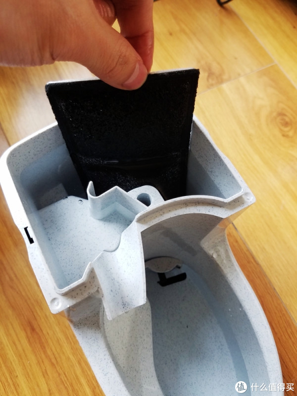 加入滤芯之前先要清洗一下滤芯,把表面清理干净后,黑色朝外插入。