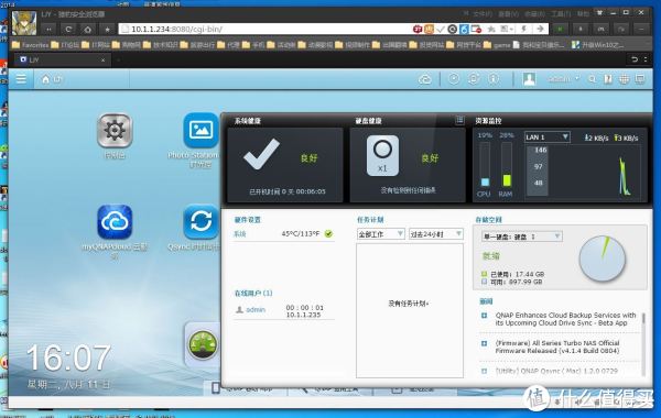 Qfinder,这是威联通自行研发的软件,作用是可以在不开启浏览器情况下,对NAS进行实时监控。我倒是觉得这软件还是挺不错的,至少省去打开浏览器输入网址的步骤。