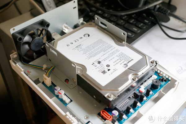 这货支持双硬盘,附件有SATA数据线和电源线,安装第二个硬盘时需要接线,而安装第一个硬盘则不需要接线就可以安装了。