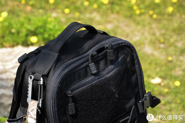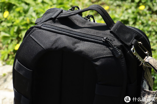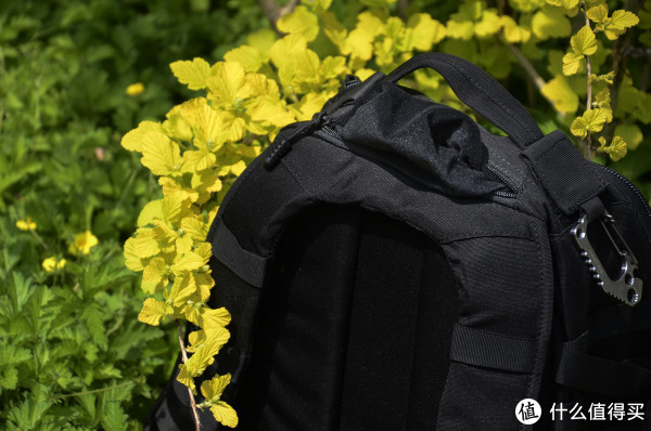 BP25提手后侧还有一个较隐蔽的拉链仓位,试了一下,双肩背负时可以抬手向后拉开此处拉链。
