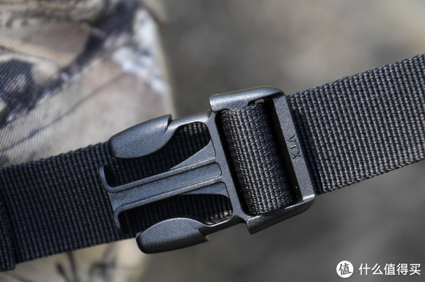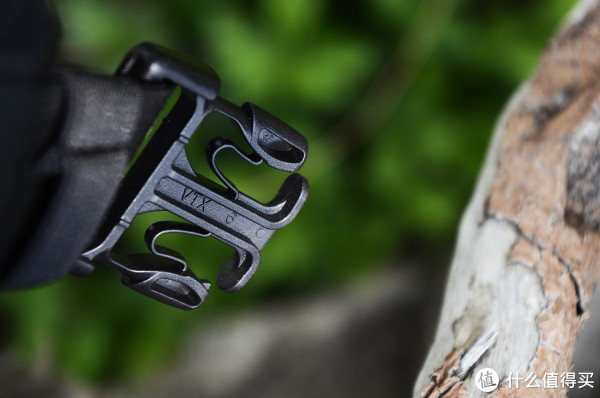 BP25所有大部分扣具、挂环均使用VTX品牌,这是国产品牌,为东莞国扣扣具公司生产,有自己的研发设计生产能力,算是国内质量比较高的。从外观来讲,VTX做工比较精细,表面没有毛刺,插轨清晰,锁扣平整,尼龙带拉紧后还有自锁紧能力。