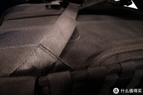 长途行进采用双肩背的方式,短途通勤单肩背负即可。由于肩带宽且厚,即便比较沉重也不会带来肩部太大不适,此时背带顶部相连的作用就显现出来了,大面积的缝合不会扯豁缝线处,不过还是建议左右肩换着背。