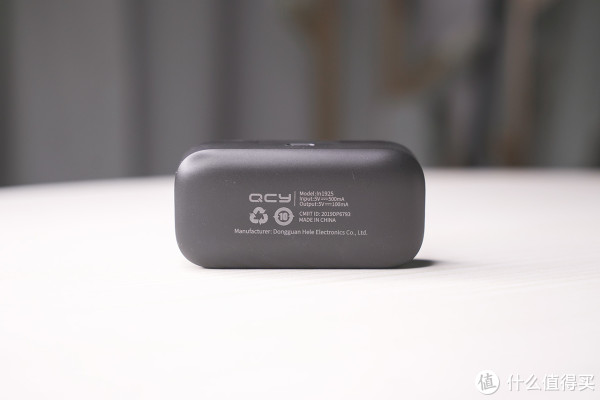 耳机盒整体是采用黑色工程塑料,没啥好说的,意料中的塑料感和廉价感。底部的字体清晰度都很好,但表面“QCY”三个字母就很模糊。