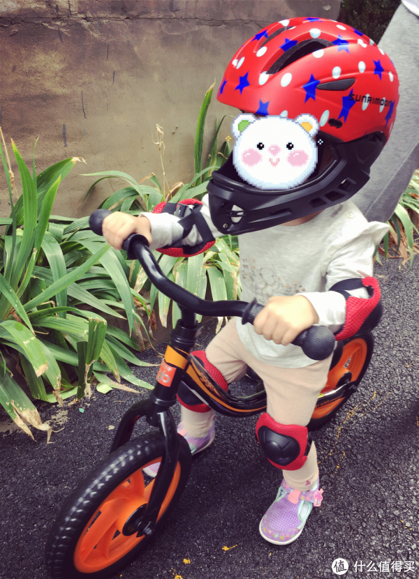 骑了一会就不戴了,因为她骑得很慢,老公在后面保护,目测问题不大。为了不破坏娃的好心情,老母亲很不情愿的给她摘了下来…