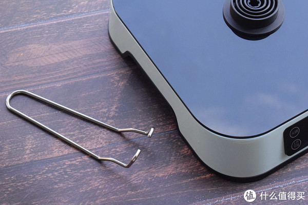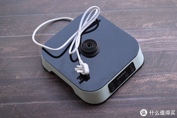 底座加热炉的黑色面板光洁如镜,不过抗污能力不是太好,容易沾染油垢,需要时常打理(多用软湿布勤擦)。另外可以看到底座两旁各有一凹槽,便于提起移动。厂商承诺一年内免费换新,所以质量上还是有所保障的。